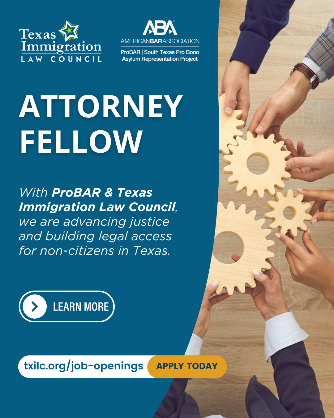 With ProBAR and Texas Immigration Law Council, we are advancing justice and building legal access for non-citizens in Texas. Fellowship positions are now available!